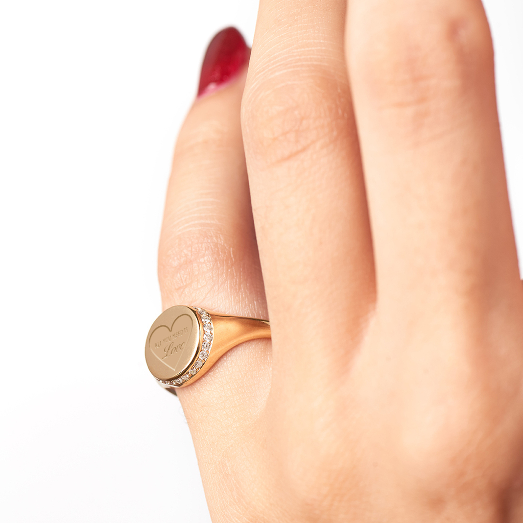 O anel possui uma base superior de aproximadamente 10 mm, ideal para personalização.