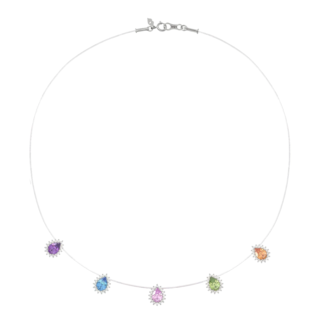 Material:Ouro 18K , Nylon, Diamantes, Topázio Azul, Citrino, Peridoto, Safira Rosa e Ametista.