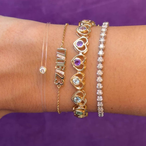 Pulseira Rainbow Heart Ouro Amarelo Multipedras