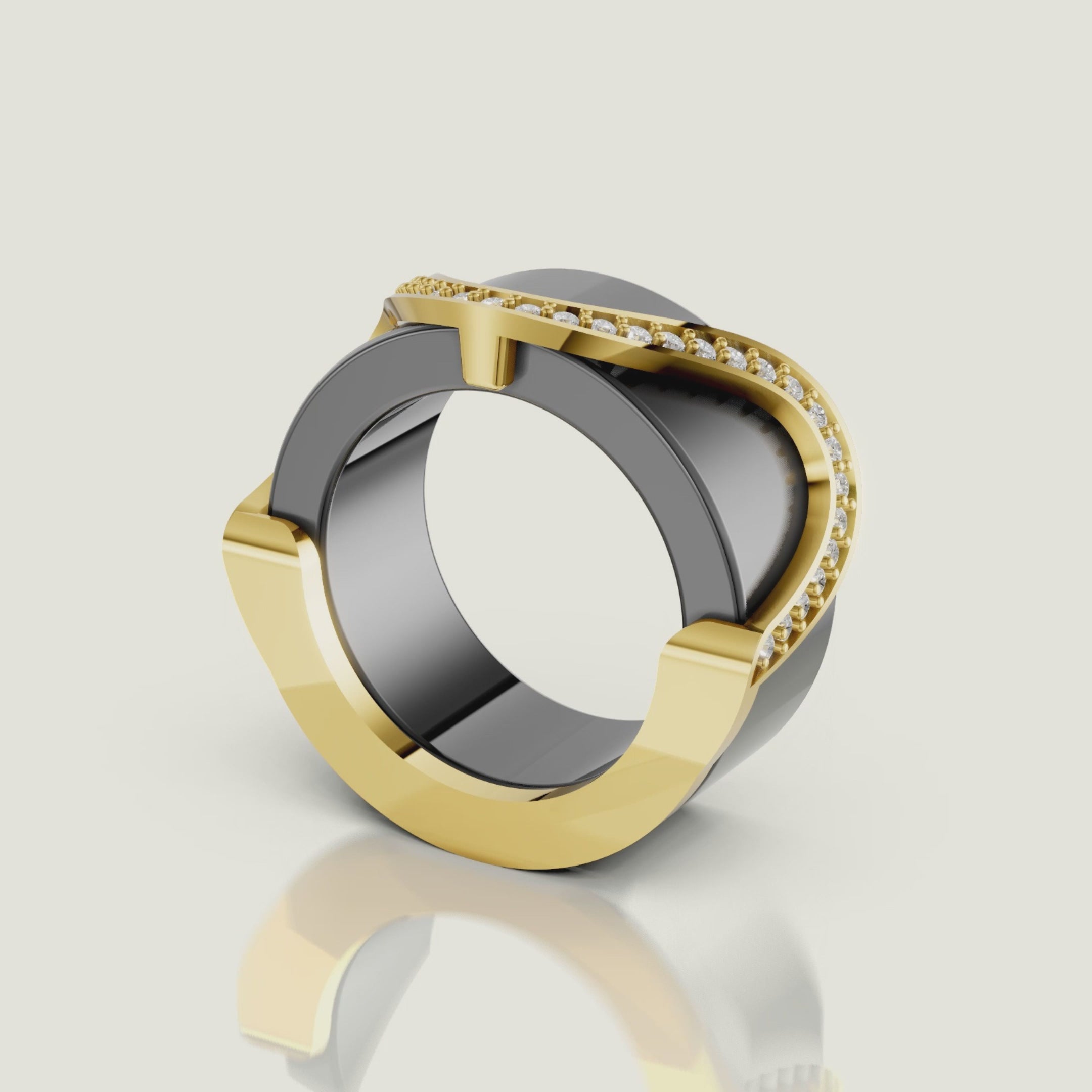 Oura Ring Jacket Onda Pavê Ouro Amarelo