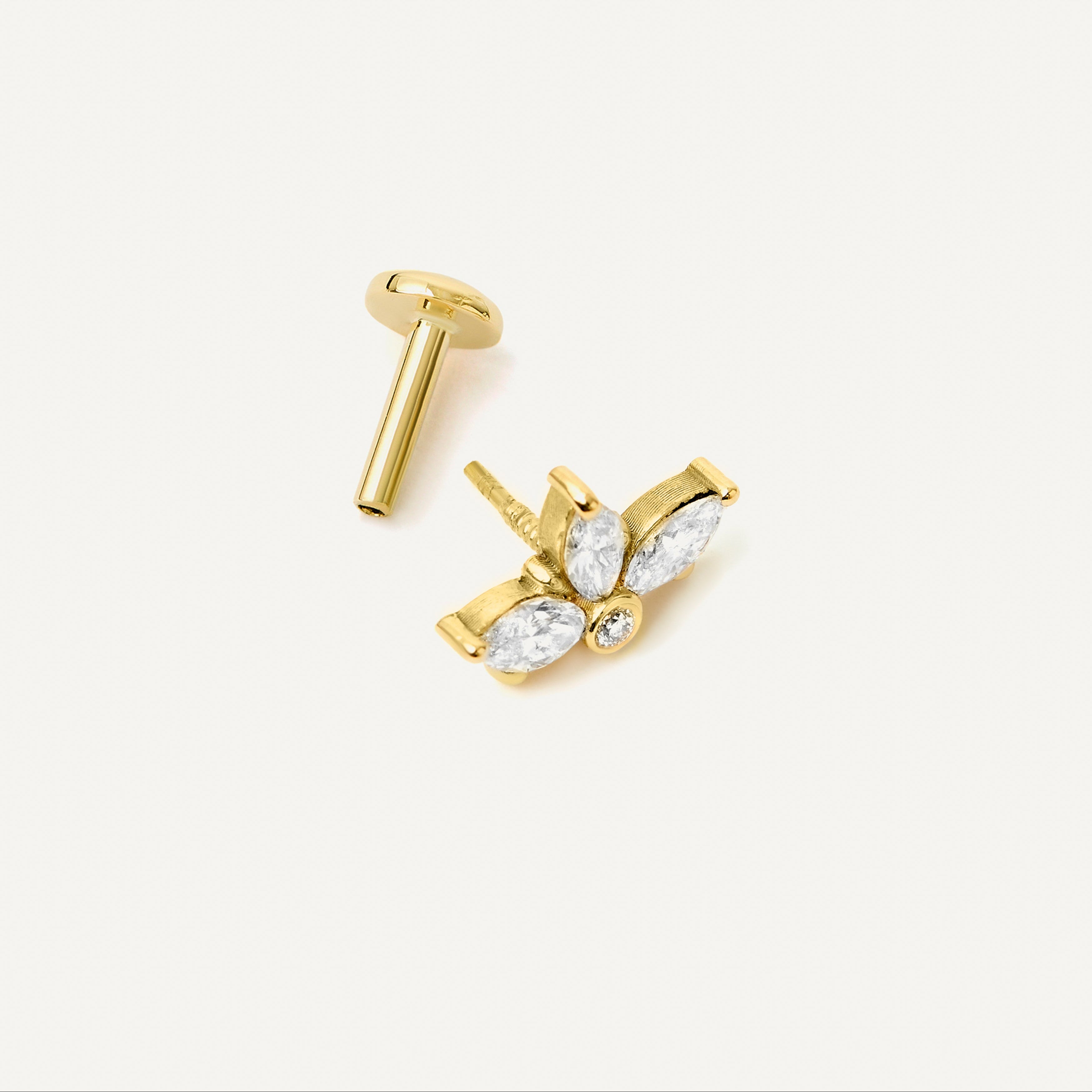 Piercing Trevo Dot Ouro Amarelo Diamante