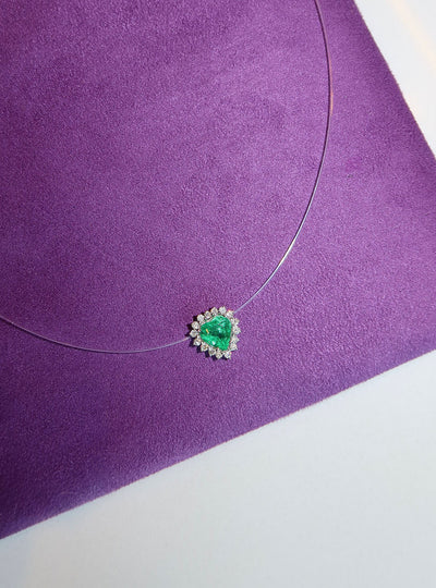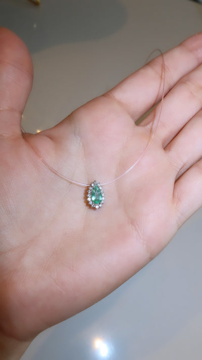 Colar com pingente de esmeralda em lapidação gota e moldura de diamantes