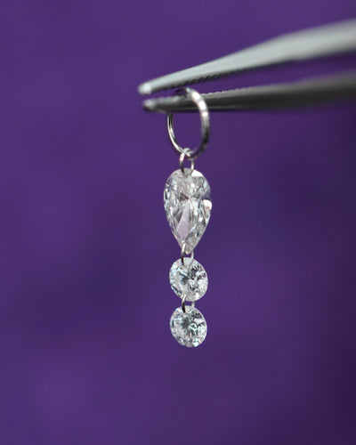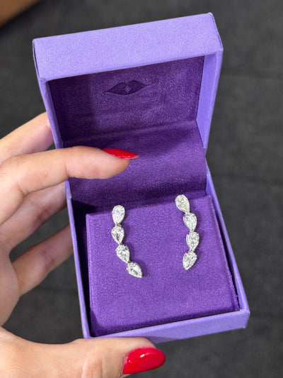Argola pavê com cascata de diamantes e gota de tanzanita