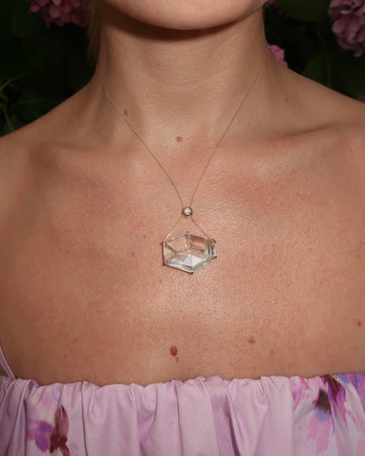 Colar gravata com ponto de luz em diamante e pingente central em lapidação especial