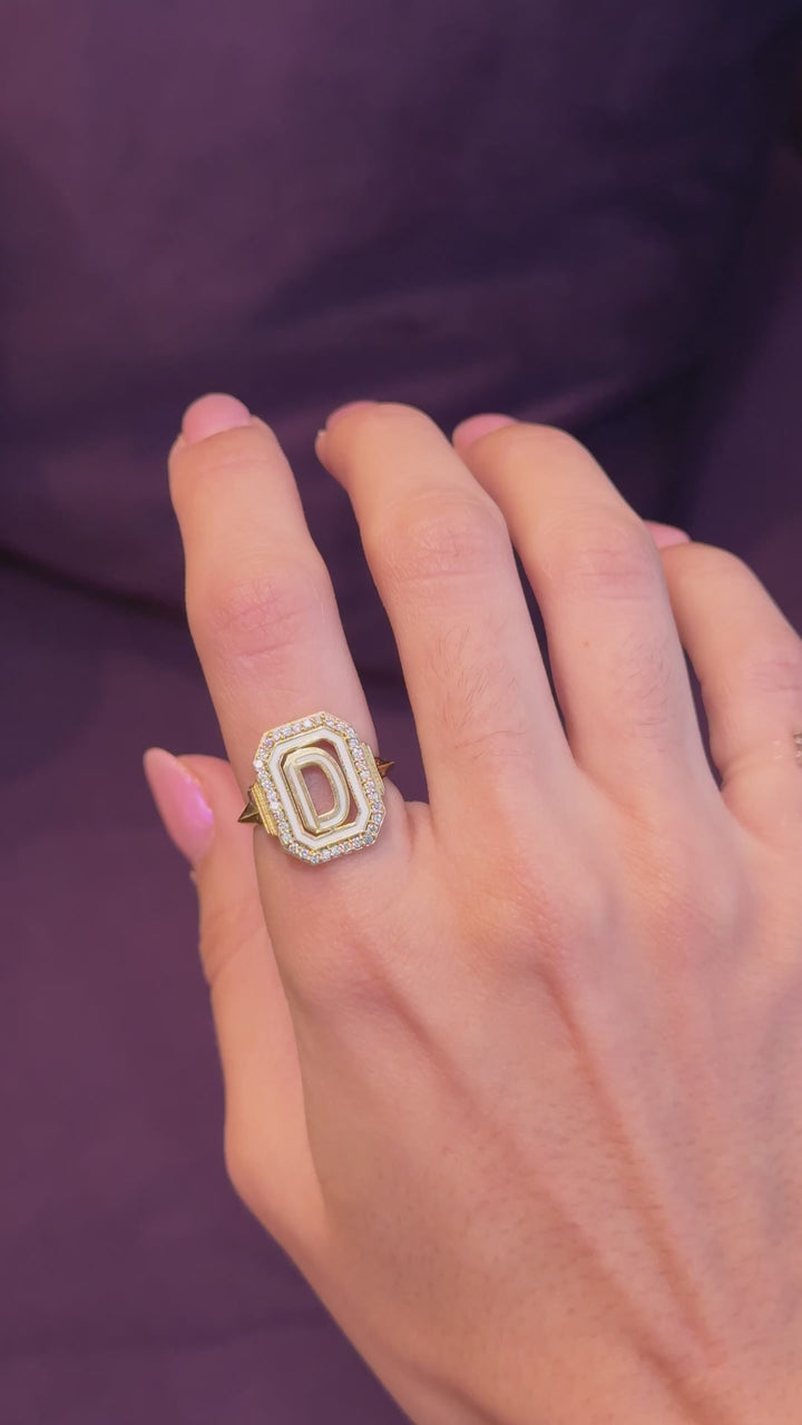 Anel statement em ouro 18K com diamantes e resina, ícone do DNA da leal. Personalizável com sua inicial, com opção de esmaltação ou acabamento clean.