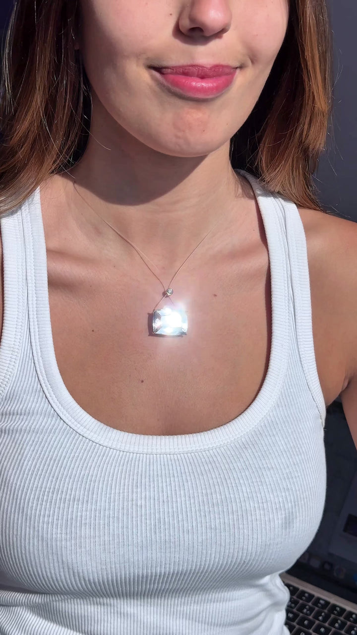 Criação exclusiva da leal, com design inovador que combina leveza e elegância. Montado no fio de nylon especial, o modelo em formato gravata traz uma pedra central de topázio branco na lapidação cushion acompanhada por um ponto de diamante e ouro 18k.