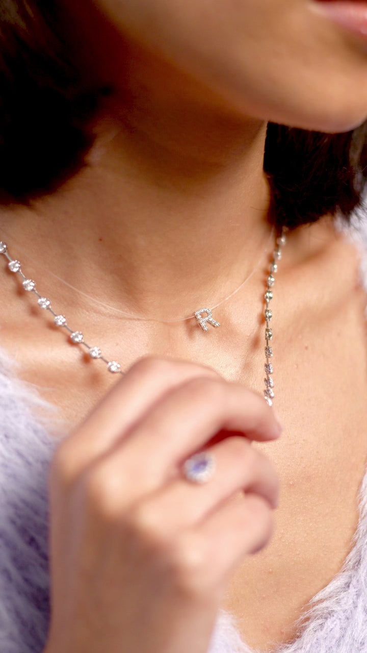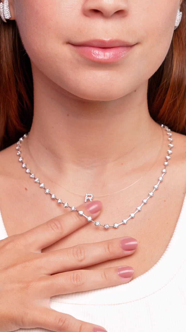 Colar Nylon Inicial Pavê Ouro Branco