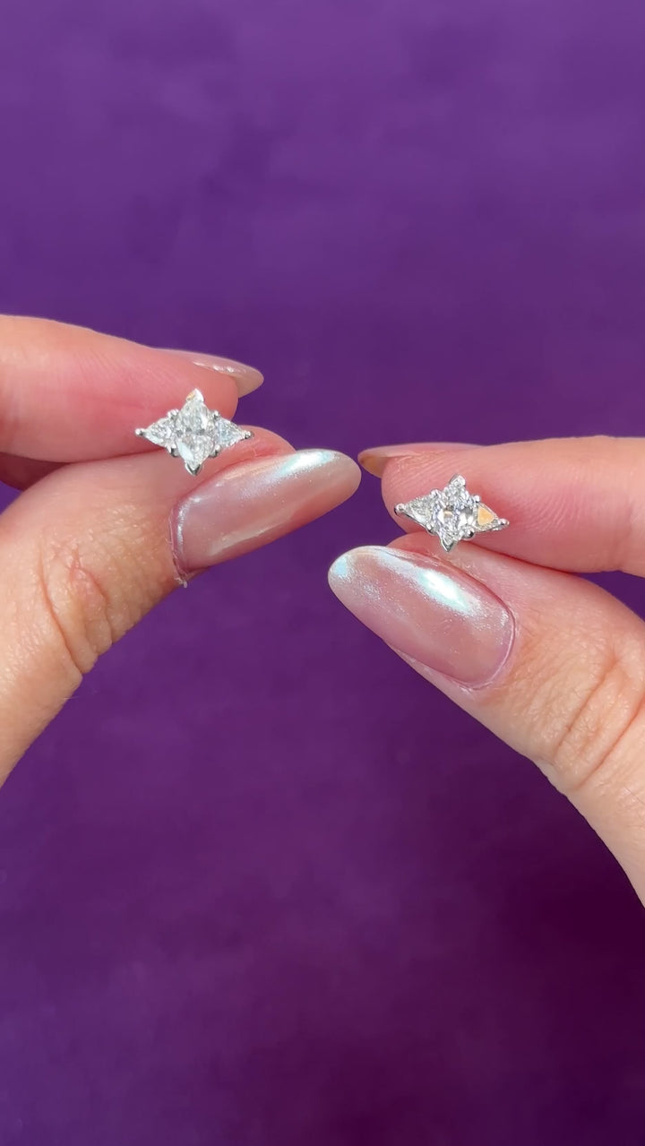 Design exclusivo e best-seller da Leal. Piercing em ouro 18k com diamante central na lapidação navete e dois diamantes laterais com lapidação trillion. Aproximadamente 0,7 ct. Ideal para helix, conch e lóbulo.