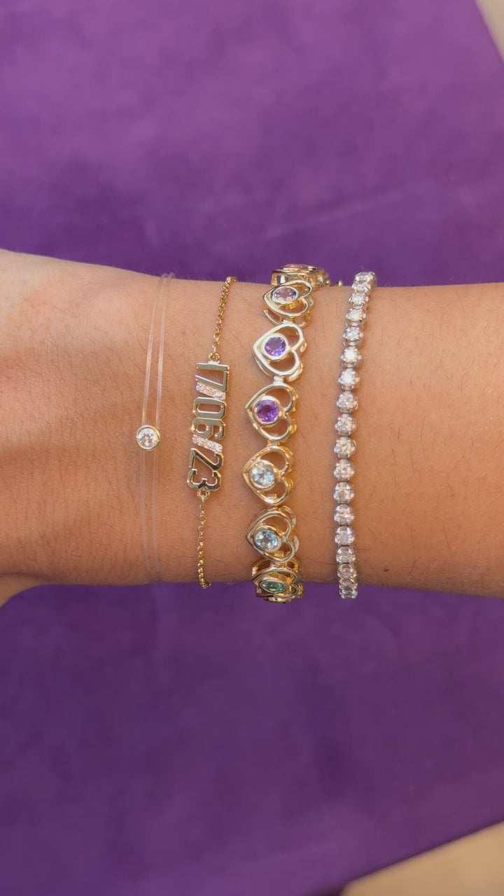 Pulseira no fio de nylon, ouro 18K, com ponto de luz central em diamante que traz brilho e leveza à pele.